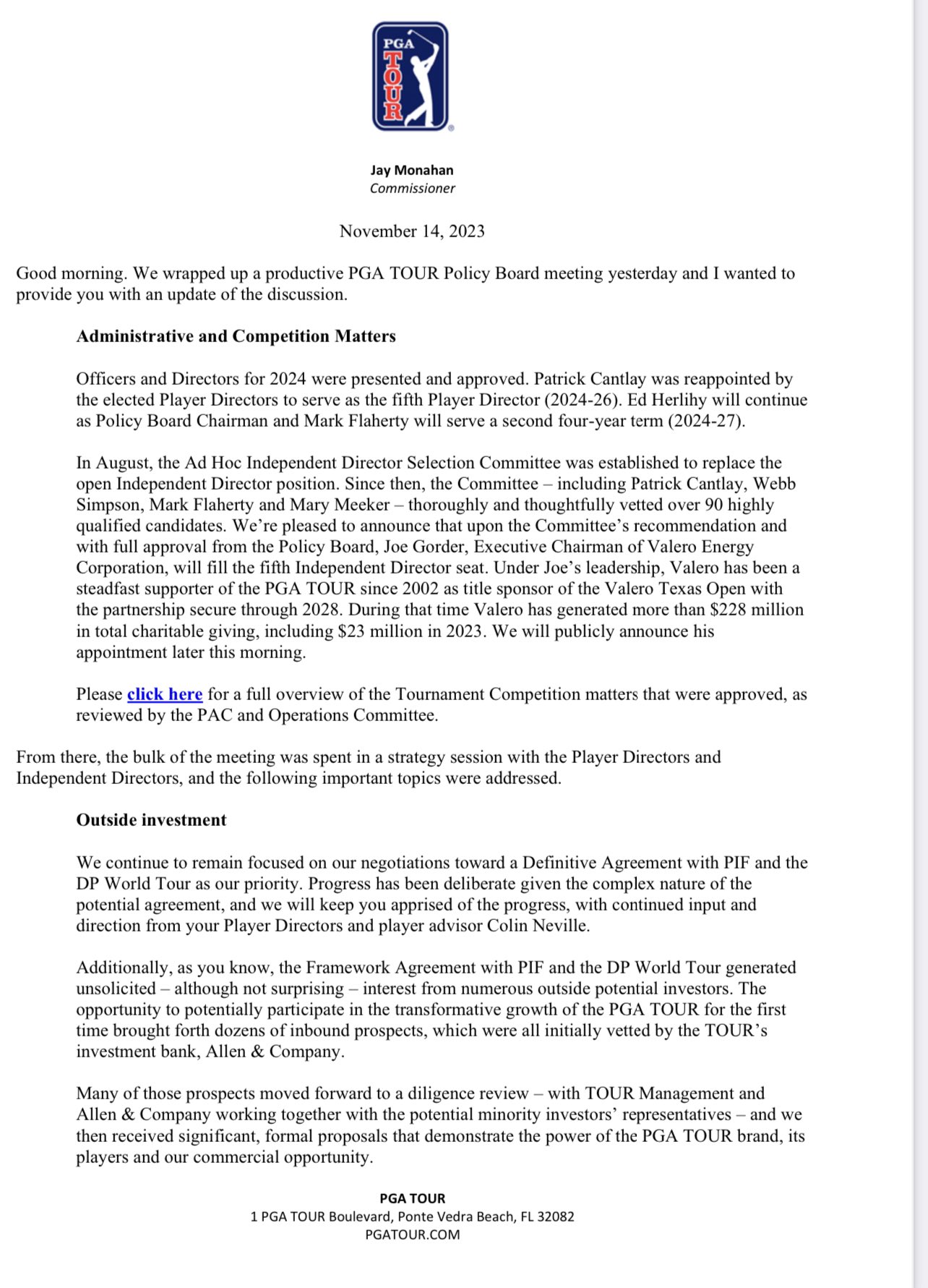 Source : www.pga.comLauren Hirsch on X: “Update from PGA commissioner Jay Monahan